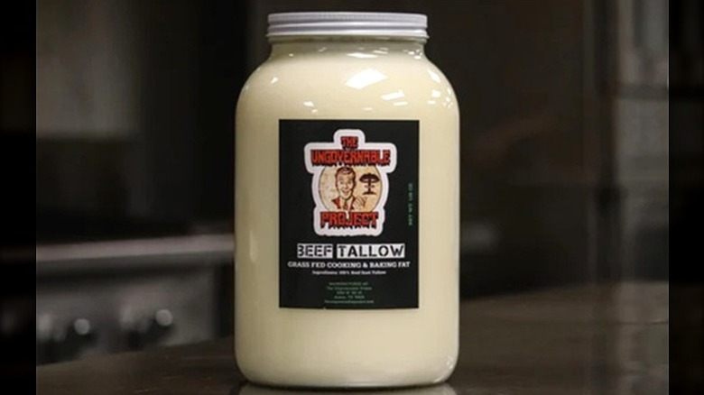 Fond is loved for its wide variety of chicken and beef bone broth, but its roll-out of beef tallow has pleased customers just as much. Fond stands out as the first verified regenerative beef tallow, which is crafted from pasture-raised, grass-fed cattle using sustainable, regenerative ranching practices. Produced in small batches, the tallow is slowly rendered in stainless steel kettles for about six to eight hours. Fond uses the suet — the hard, white fatty layer around the kidneys — which is melted with low heat and then strained for purity. Tallow can be made faster on the stovetop, where it takes three to four hours, but it requires constant supervision, so it doesn't burn. Bonus, you can eat the beef cracklings left behind after straining — crunchy bits of beef that float to the top of the tallow.