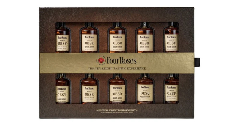 Whether you're already a fan or new to the master distillery, there's a new taste to experience, from the spice-forward OBSK, the nuanced OESV, or the rich OESF. Most consumers don't realize that the everyday Four Roses Bourbon (formerly known as the Yellow Label) is a combination of all ten recipes, while their Small Batch and Single Barrel expressions hone in on just a few. Four Roses has been producing whiskey since 1888, and even Prohibition didn't slow down the production. Back in the 1920s, the spirit was sold as medicine rather than a nightcap, which was how Four Roses and a few select distilleries skirted the Prohibition laws. This placed Four Roses as a legendary player in the whiskey world, and this set allows everyone to experience these impressive achievements.