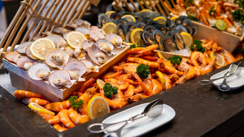 Unless you go to one of the best seafood buffets in the U.S., you shouldn't expect the shrimp, scallops, fish, and other items to be cooked to absolute perfection. When these items are placed into the warming trays, they will continue cooking. If they cook for too long, the proteins may denature too much, resulting in that annoying rubbery texture.