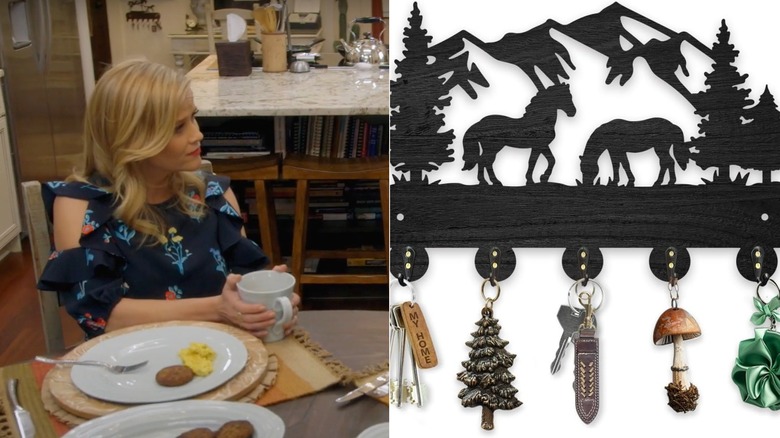Take a leaf out of Dolly's book and add something like this MayjoyDIY mountain scenery key holder or Comfy Hour Store's cast-iron hanger depicting three running horses. These statement pieces are a $20 bargain.