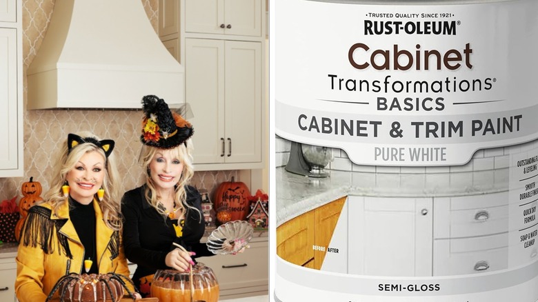 A quick glance at Dolly's neutral-toned kitchen is enough to inspire anyone to mimic her minimalistic designs. Total renovations are real bank-breakers; avoid this approach unless you have thousands set aside for frivolous spending. Instead? Get Dolly's look by simply painting your cupboard doors. A lick of paint is the cheapest hack for achieving white kitchen designs for a timeless space. Darker colors will require more coats but, generally, it's possible to snag enough high-quality paint for $20 or less — Rust-Oleum's pure white cabinet and trim paint is a prime example.