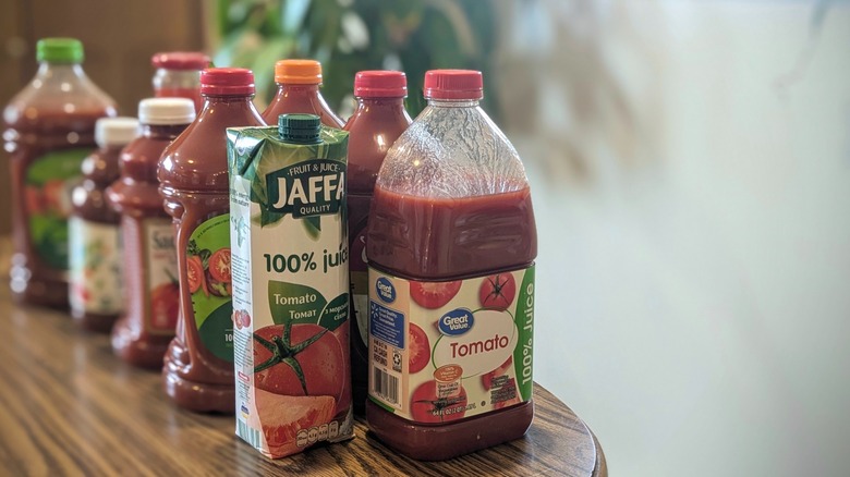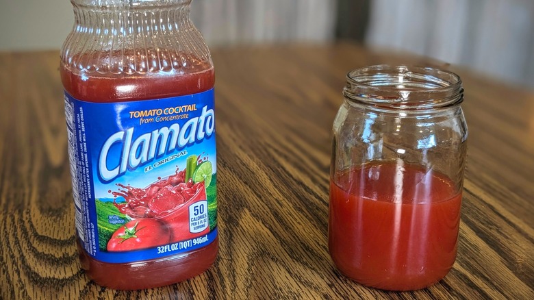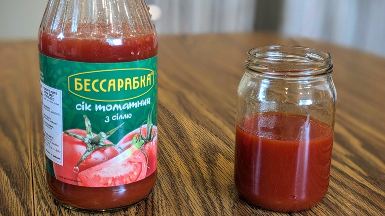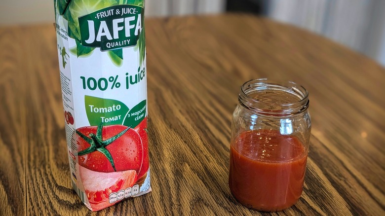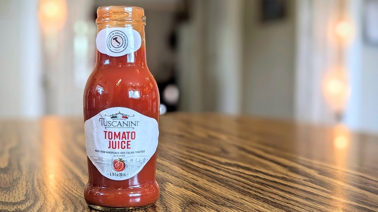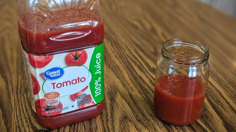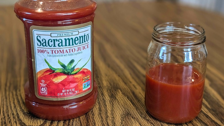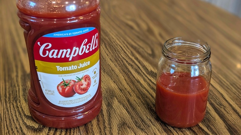 Love it or hate it, tomato juice is a powerhouse of nutrition, vibrant flavor, and savory possibilities. Whether you're crafting bloody marys, making an unexpectedly tangy salad dressing, or looking to get more nutrients and antioxidants in, tomato juice is your greatest ally. Few drinks tread between rustic simplicity and classy, cocktail-ready elegance, but this acidic, tart, and salty drink doesn't play by standard fruit juice's rules. Tomato juice comes with a plethora of uses around the kitchen, so even if you don't like to sip it, it's always worth keeping around when the urge for gazpacho or an easy pasta sauce strikes.