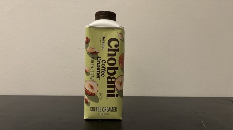 Known primarily as a Greek yogurt brand, Chobani has continued to expand its product offerings over the years to include yogurt drinks, oat milk, and now creamers. Launched in 2019, Chobani coffee creamers are unique to others on the market as they're made with real cream. It may come as a surprise to you (at least it did to me when I first found out) that most other creamers are predominantly made with oils like canola oil, palm oil, soybean oil, or some sort of casein derivative, without using milk or cream. Chobani's creamer also contains only five ingredients: milk, cream, cane sugar, hazelnut flavor, and natural flavors.