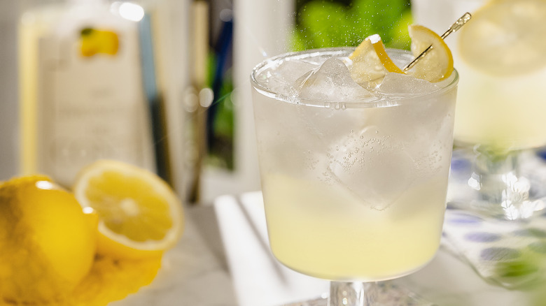 We know limoncello, a popular Italian lemon liqueur, but it's traditionally served all by its lonesome. As delicious as the stiff, citrusy spirit is solo, the strong flavor can benefit from a little spritz. When stirred into a tonic, limoncello becomes another summertime spritz that's nice and tart while being strong enough to catch a buzz. With only two ingredients that are right in the name, even the most novice of bartenders can whip this up on a sweltering day. It's the drink of the Amalfi Coast; classy, refreshing, and easy drinking.