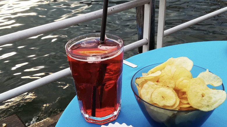 Before the Aperol spritz, there was Lombardy's Pirlo, a bitter, low ABV spritz made with Campari. It greatly represents its region — Brescia — where residents savor locally made white wine and Campari. Pirlo is a Northern Italian tradition, and the perfect spritz for Campari fans. White wine swirled with Campari makes this bitter yet refreshing spritz. The name is a twist on the Italian expression "pirlar," nodding to the vibrant swirl of red and white. Garnishes range, but a thick orange wedge is the most common, as it's Campari's top sidekick.