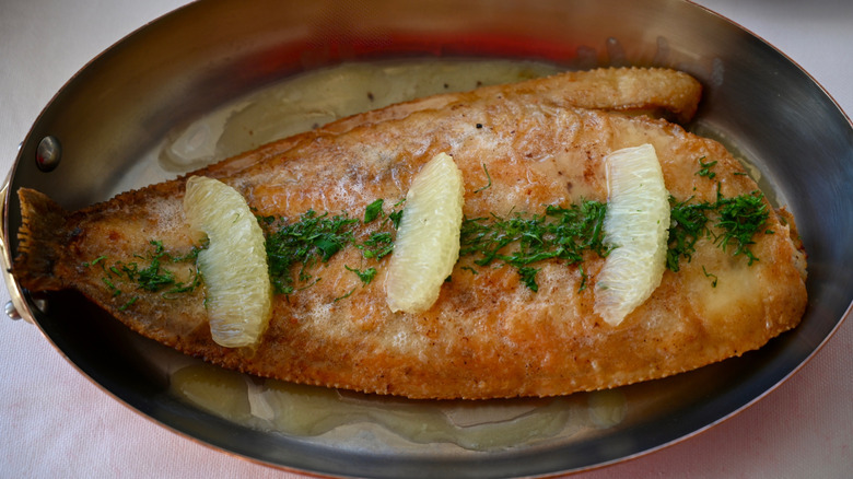 While American variants (which are often just flounder varieties) are virtually identical to its European counterpart, the meat tends to be milder, thinner, and ultimately more delicate, as well. Despite the fish's fragile body, it can resiliently handle the heat of a sizzling pan. And even though sole isn't a budget-friendly fish, it's worth the price tag.