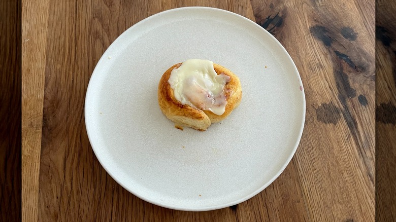 The popular Pillsbury product that I couldn't help reaching for seconds of was flaky cinnamon rolls with butter cream icing. It's not lost on me that the cinnamon rolls with original icing rank lowest on this list in comparison. Now, let's get into the differences. As soon as I opened both cans, I noticed that the flaky cinnamon Rolls burst out of the packaging with an evident fluffiness that unraveled the dough's prearranged spiral. The cinnamon rolls with original icing emerged compact as if they had been preemptively smashed. That visual contrast foretold the dramatic polarity in their tastes.