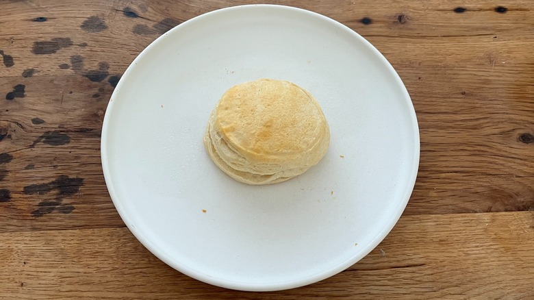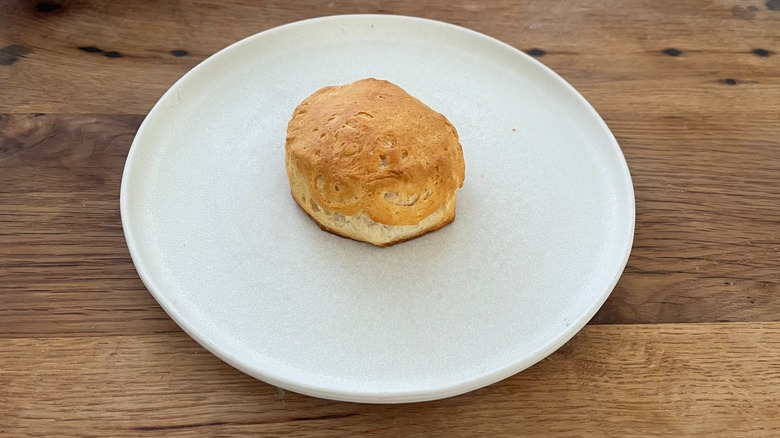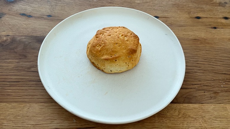 Instead, I found myself biting into a fluffy Southern-style biscuit with the best texture of the bunch, which is much less chewy than its counterparts. The mouthfeel is a wonderful balance of flakiness with a light-as-air, rich buttery biscuit dough. The exterior of the biscuits crisped more prominently than any of the other biscuits, and this, paired with the quality of the interior, made for an intensely satisfying overall texture balance. The flavor of these biscuits is decadent enough to be enjoyed without the need for additional toppings. That said, with all the Pillsbury biscuits, I'd recommend eating them piping hot straight from the oven for maximum texture enjoyment.