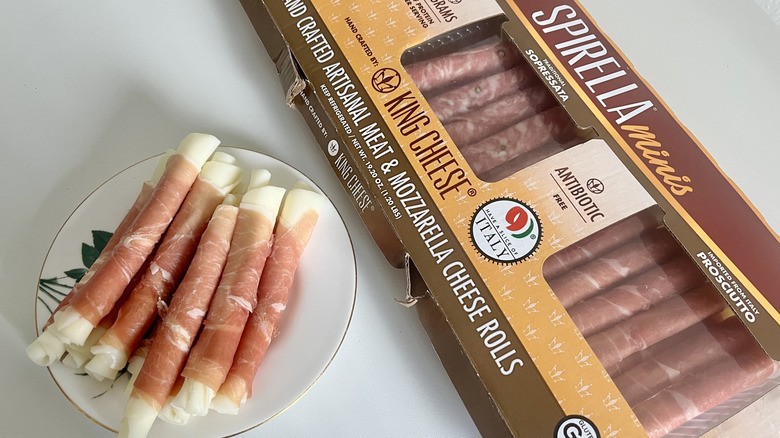 Meat lovers can rejoice because the King Cheese Spirella rolled minis comes with two types of deli meats: the beloved prosciutto as well as sopressata. These are ideal to pack in your lunch or to-go container and alternate between without feeling bored, particularly since the back of the packaging states these are better served at room temperature. This is because the meat and mozzarella cheese soften as they reach room temperature, allowing for a creamy bite that's easy to chew.