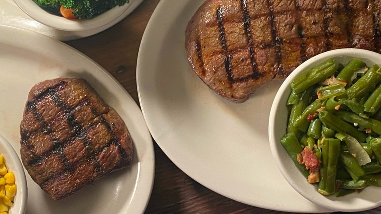 That said, the two meals aren't created equal. While you might get two sides and rolls with your meal at Texas Roadhouse, Outback gives you the choice between Aussie fries and a veggie side, along with bread. Sides seem to vary based on location, with some menus noting steamed veggies are on offer, while others say mixed veg, and still other locations note that veggie offerings vary based on the season. Redditors also note that the quality and offerings can vary based on the individual restaurant, but many find it a reliable, affordable go-to no matter what the specifics are.