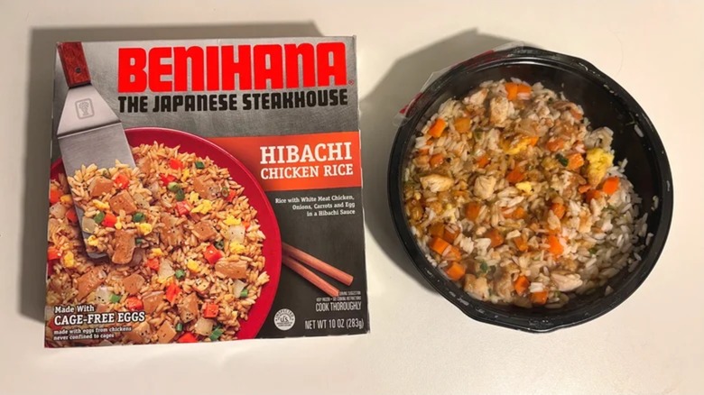 There are a lot of things you should know before heading out to a Japanese steakhouse for the first time, and if you're interested in bringing some of those incredible flavors home, we've got a tip for you: Skip Benihana's Hibachi Chicken Rice frozen meal. When we here at Tasting Table ranked an assortment of restaurant chain frozen meals, this is the one that took the very bottom spot. Not only did we find it to be defined by an overwhelming sweetness, but the eggs had an unpleasant texture that just added to the unfortunate experience.