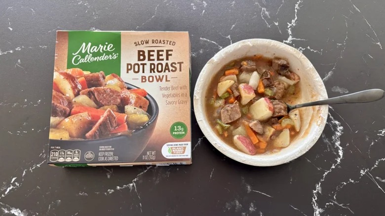 Marie Callender's is arguably better known for its frozen foods than as a restaurant, and the pies are pretty amazing. You might love the pot pie from this company, and it might make you start to look at some of the other frozen entrees. They're not all equal, though, and when we ranked Marie Callender's frozen meals, it was the Beef Pot Roast that our reviewer found to be blandly revolting.