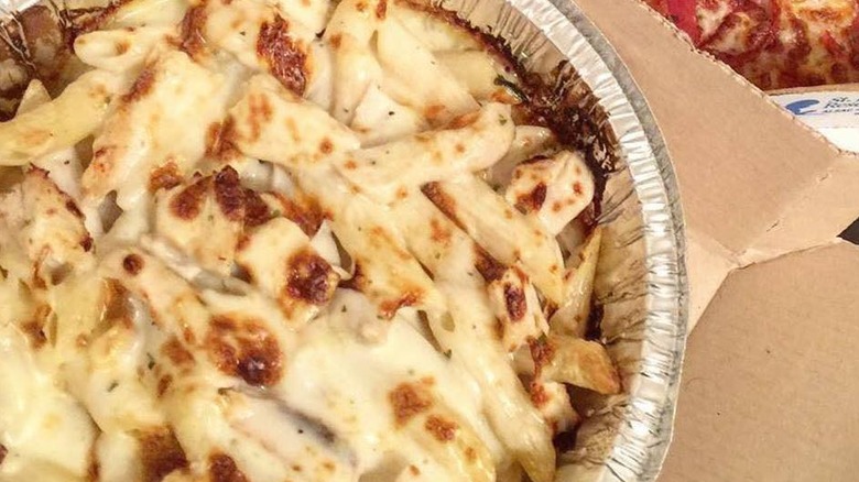 Pizza Hut and Domino's are, of course, pizza places first and foremost. But that doesn't mean that pizza is the only dish that either of the chains offers. Go a little deeper into the menu, and you'll find a whole slew of both savory and sweet to choose from. Although it may be a slightly unconventional order, you can get pasta from either of these chain pizza joints. Whether you just don't feel like boiling water for pasta yourself or your whole group wants pizza but you're craving a bowl of something warm and comforting, snagging yourself a pasta dish from either of these restaurants can be a good idea.