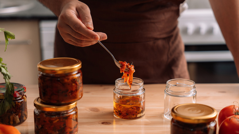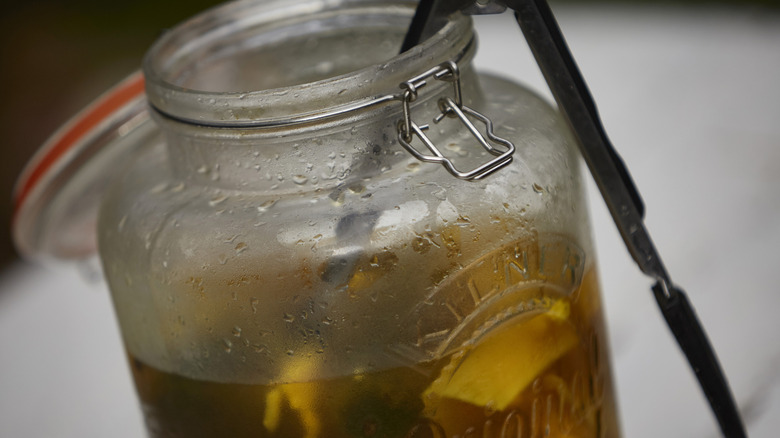 "If you are creating your ferments in a sealed jar, it is also important to release trapped gases created in the process," says Roszkowski. Without doing so, you run the risk of built-up pressure that could cause the top to pop, or an entire container to explode. It's always a good idea to taste along the way, as well. Use sterilized utensils and avoid reactive metal tools that can impart unintended flavor.