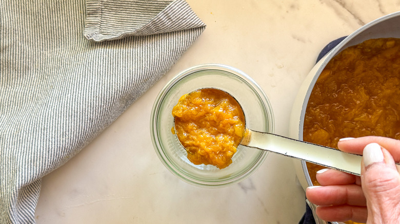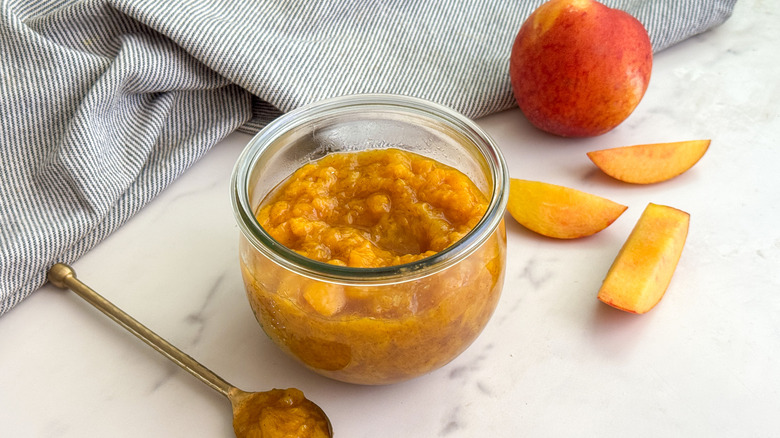 Once you've mastered the perfect Stars Hollow peach sauce, you can easily customize it to alter the flavor profile — we're sure Sookie would approve. In terms of sweeteners, you can swap the maple syrup for honey, brown sugar, or coconut sugar. Honey will add a hint of floral to the taste. Brown sugar and coconut sugar will both add a molasses-like caramel flavor. Instead of cinnamon, try a combination of ginger, cardamom, and nutmeg. For a little more complexity of sweet spicy flavor, add a pinch of clove or allspice.