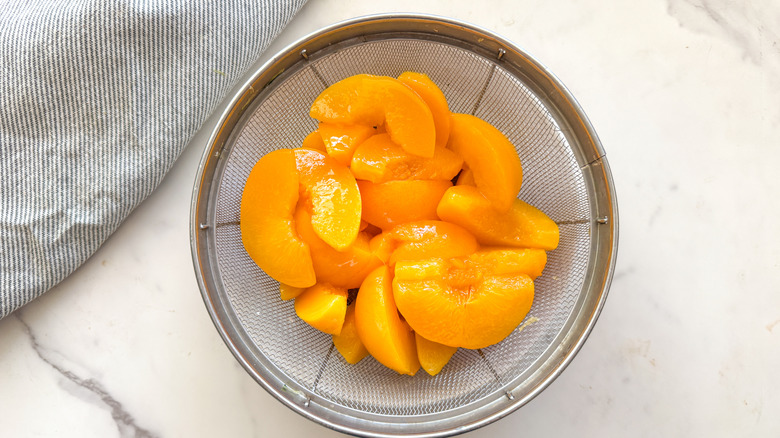 - Drain the peaches in a colander but do not rinse them.