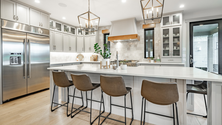 A recurring feature in Joanna Gaines' kitchen designs is her deliberate use of white marble, a material that instantly elevates any space with its clean, timeless appeal. Known for its subtle veining and naturally luminous surface, white marble has long been associated with sophistication and luxury. While it's been used in countertops for many years, Gaines goes beyond the traditional by using the metamorphic rock in a variety of kitchen features.