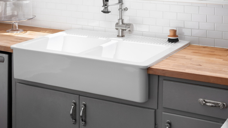 If you're wondering which sink to choose for your kitchen, Joanna Gaines is a great source of inspiration. She's a big fan of the farmhouse sink — in fact, she's been credited with playing a key role in its revival. It's one of the few design elements that capture the charm of a vintage kitchen and one that creates a wonderful blend of modern and rustic. Today, you'll find these sinks in most homes that have been designed in a modern farmhouse style.