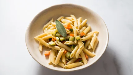 For this recipe, you will need extra virgin olive oil, onion, carrot, zucchini, salt, and pepper. The recipe calls for penne pasta, but you can substitute other short pasta shapes if desired. Finally, have vegetable broth and fresh sage leaves on hand.