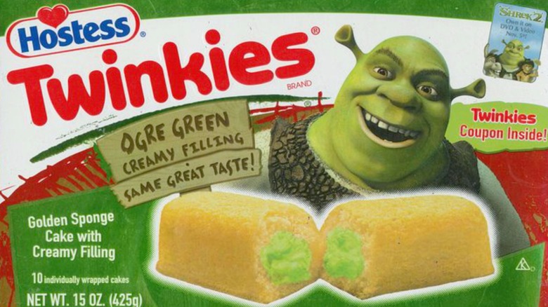 Don't worry, these green Twinkies weren't wasabi-flavored. The special (we're using that term loosely) Twinkies had the same flavor as the standard variety of the beloved snack cake, but with a hefty dose of swampy food coloring in the Twinkie's mysterious, creamy filling. Although there wasn't anything wrong with their flavor, the controversy around the Shrek-themed treats arose in the 2010s. During this time, parents were becoming more mindful of advertising campaigns targeting their children, especially those promoting junk food. So maybe there was nothing technically wrong with the cakes themselves, but visually —and perhaps morally — they were despicable. Better out than in, we always say.