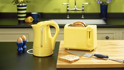 Choosing the right color kitchen appliance can demonstrate intentional decor without visually taking over a kitchen area, but you'll want to consider how to best place these selected splashes of color. From toasters to refrigerators to kettles, replacing steel and industrial-looking appliances with colorful statement pieces can be balanced by other neutral or natural features within the room. The idea is that your colorful appliance doesn't dominate the overall aesthetic and settles into the backdrop of your cabinets. While you can opt for bold, bright choices, you can also place softer colors into a space, as even the color cream can hint at purposeful elegance, contributing to a cozy sophistication compared to a room painted white and outfitted with traditional appliances.