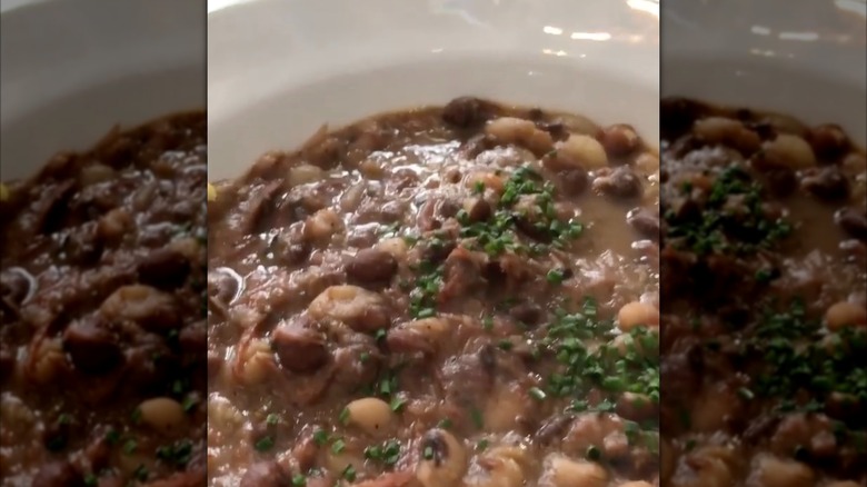 Oprah knows how to treat herself well, it seems, because when it's her birthday, she likes to indulge in her favorite meal, at least according to her Instagram profile. Indeed, on her 64th birthday, which she celebrated in 2018, she posted that she was enjoying her favorite meal: black-eyed pea stew with cornbread (not one slice, but two, because it's her birthday) and a fine glass of rosé, courtesy of John Travolta.
