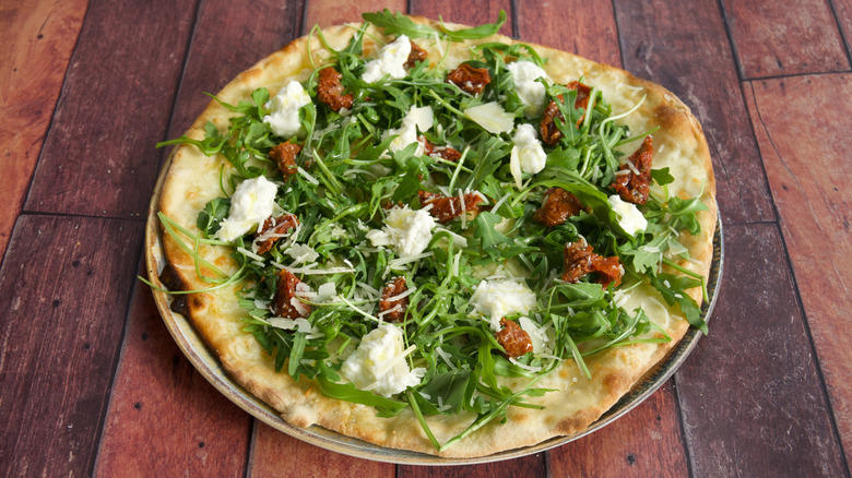 When you're on the prowl for a late-night meal after a party, or are in need for a hearty comfort food, you may immediately think of pizza — maybe just not spinach pizza. But that might change after you hear about Oprah's favorite pizza, courtesy of French chef Philippe Chevalier, which she says is "the best pizza that [she] ever [remembers] having." This one is made with a creamy white sauce blended with sauteed spinach, herbs, and garlic.