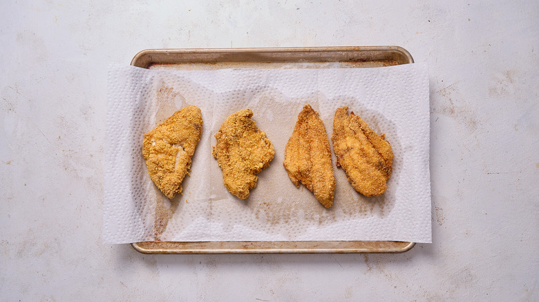 Once fried, set catfish aside to drain.
