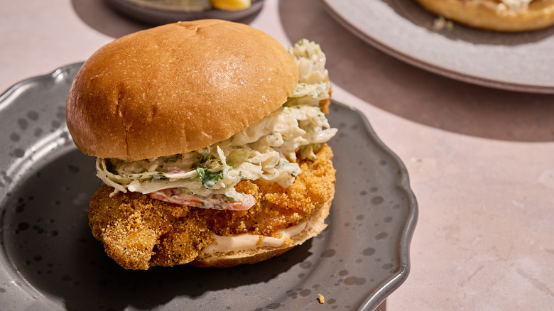 - To build the sandwiches, add catfish, coleslaw, and remoulade to the brioche buns and serve.