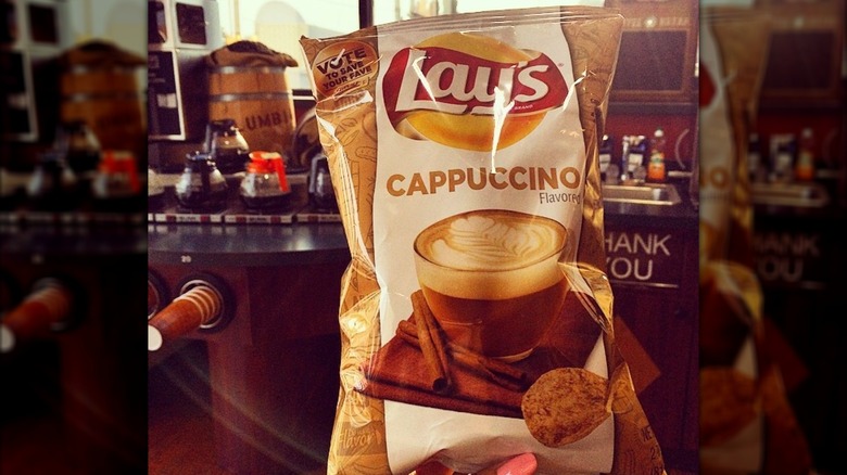 Just because you can do something doesn't always mean that you should do that thing. That's kind of the case with Lay's Cappuccino chips, which hit shelves in 2014 and seemed like someone's idea of seeing just what kind of bizarre headlines people are going to believe. The chips were one of four finalists in the "Do Us a Flavor" promotion, and honestly, it kind of feels like the idea was submitted by someone who meant it as a joke, and the whole thing got carried away.