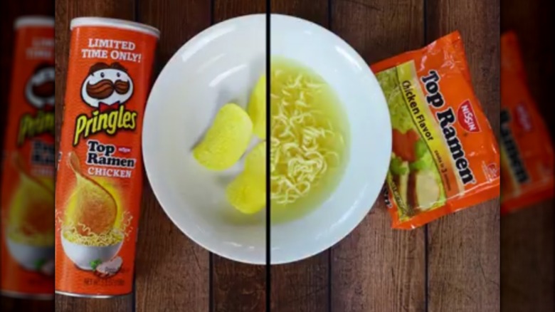You can definitely file this one alongside all of the other things that we never knew we needed, because let's be honest: Ramen is amazing. Sure, some of us might love making our own meal prep-friendly ramen jars with fresh veg and homemade sauce, but Nissin has its place in the world, too. Back in 2017, Pringles announced a sadly limited-time flavor that combined Nissin's Top Ramen chicken flavor with Pringles, and there's a good chance that you might have missed this one completely. Not only was it limited, but the only place you could find it was at Dollar General.