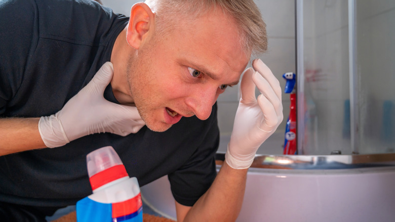 Ammonia itself can have some pretty nasty effects in high concentrations, so it's another chemical you should only use in a sufficiently ventilated area. However, there are also a number of other chemical types that it reacts strongly with, producing a range of potentially dangerous or deadly outcomes. If ammonia comes into contact with an oxidizer, like bleach, it produces chloramine gas, which has similar health effects to chlorine gas. You should also be careful if you're cleaning with hydrogen peroxide. If mixed with ammonia, the combo can produce harmful fumes, and the reaction even has the potential to be explosive.
