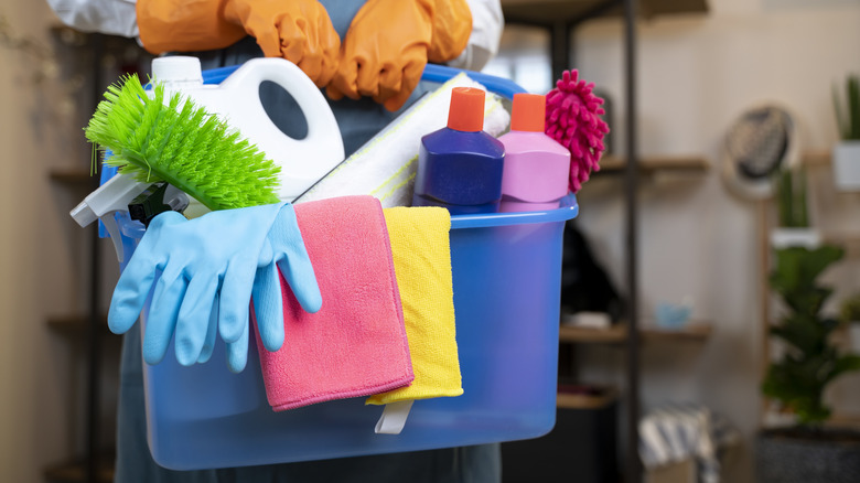 It's also important to remember that not all cleaning products have sanitizing properties. Bacteria, viruses, and mold can still thrive in soaps and detergents if given enough time to grow. There's no telling whether a forgotten bottle of detergent has become a hotbed for dangerous microorganisms. Fortunately, most cleaning products come with a printed expiration date, so be sure to check the label when you're making a purchase and double-check products you've had for a while. If you do find that you're frequently left with out-of-date supplies, consider buying smaller items. It'll save you money in the long run and prevent you from having to waste stuff by throwing it out.