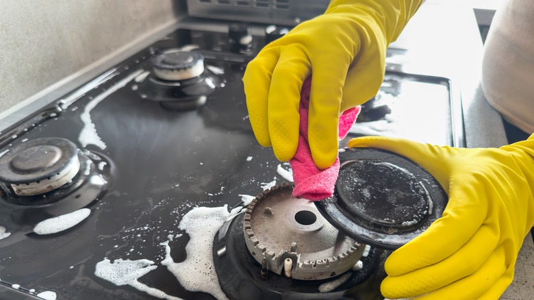 A kitchen should be a place where we can create joy by concocting delicious meals, whether we're sharing them with friends and family, producing them professionally for paying customers, or simply indulging solo. That said, it's also a place that requires a lot of care and attention. Along with bathrooms, kitchens are considered to be the most dangerous rooms in a house. Some of that risk is due to the presence of hot surfaces and sharp items, but poor sanitation is a huge culprit. Failure to thoroughly clean your kitchen can result in the spread of harmful microorganisms that could result in serious illness or even death. Ironically, cleaning is a task that comes with risks of its own.