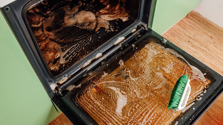There are a few different hacks for keeping your oven clean, but there's a chance you might find yourself having to use an oven-cleaning chemical product. There's nothing inherently wrong with using oven cleaner, but you need to be aware of the associated risks. Oven-cleaning products usually contain sodium hydroxide — also known as lye — which is a highly caustic chemical that can burn your skin if you're not properly protected.
