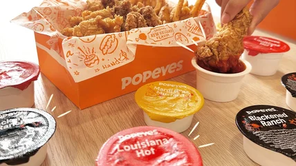 Home to Louisiana-inspired fast food and even the absolute best fish sandwich, Popeyes knows how to bring the flavor. Its bold mix of heat and sweet is evident among its many popular chicken items and crave-worthy side dishes that include Cajun-spiced fries, mashed potatoes with gravy, red beans and rice, and so much more. Of course, any good chicken spot must offer a bevy of complementary dipping sauces, which Popeyes has in droves. Its Buttermilk Ranch sauce ranks highly in Tasting Table's estimations of the top fast food ranch sauces and its Blackened Ranch is truly off the charts. If you've been wondering whether oyou could purchase Popeyes sauces to have at home, you'll be pleased to know that Popeyes Sweet Heat and Blackened Ranch dipping sauces are both available for purchase in 18-ounce bottles on Amazon and at major grocery retailers, with its Mardi Gras Mustard joining the lineup soon.