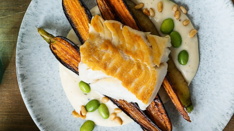 Another thing you can do is to wrap your cod in some aluminum foil before placing it in the basket of your air fryer. By creating a kind of insulated parcel, you can help keep the cod's natural moisture locked in. By adding a little liquid like white wine, you can even mimic a steamed fish result. Throw in some woody herbs and shallots into that foil parcel, and you'll have the tastiest cod ready in no time.