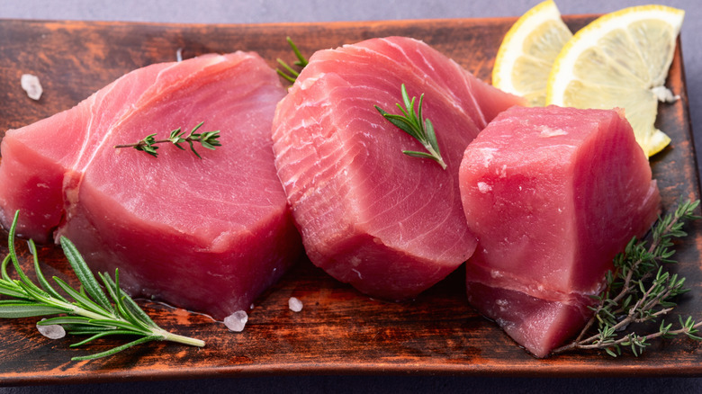 To make sure to get that classic pink center, you really only need to cook it for a few minutes. Depending on the thickness of the steak, it can take as little as four minutes to just get a sear. Plus, if you're more of a "well done" kind of tuna eater, you can just leave it in there for an extra five minutes or so. It couldn't be easier. To inject extra flavor into the tuna steaks, give them some time in a marinade. I like to make a soy sauce-based marinade with some ginger, garlic, and vinegar. If you like the outside to be extra browned, include a spoonful of honey in your marinade. The sugars will caramelize and add incredible flavor and crispness.