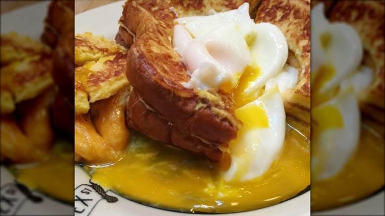 Shopsin's grilled cheese is a triple-decker sandwich made not with any ordinary bread but with French toast. Then, there's a poached egg added to the top, and honestly, that kind of changes the game when it comes to what grilled cheese can be. Customers say that it's as incredible, as rich, and as decadent as it sounds, but others warn that you're going to have to be prepared for something of a weird, chaotic experience when you go to Shopsin's. Isn't that part of the fun, though?