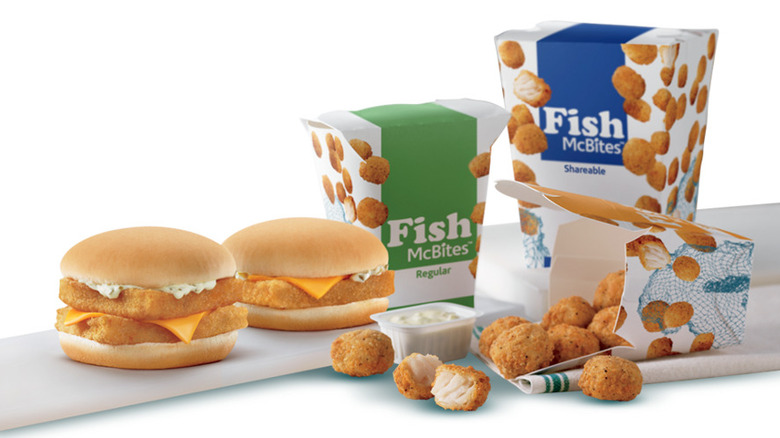Fish McBites only enjoyed a three-month stint on the McDonald's menu back in 2013. Clearly, they didn't make a splash. The bites were the first marine item to arrive at the chain since the introduction of the Filet-O-Fish a mere 50 years earlier. They took after their fishy predecessor as fried fish chunks made from wild-caught Alaskan pollock, and even came with their own jingle, the "Fishy Fishy Groove." You may recall commercials of a Fish McBite that had arms, legs, and a face, jiving along to music pouring out from a boombox.