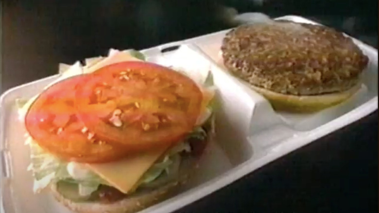 The Chopped Beefsteak Sandwich was a limited-time item only ever introduced to a few test markets. It was made from select cuts of 100% pure grilled beef, topped with real onion slivers and an in-house chef's blend of tangy steak sauce. As a dinner promotion, it was only available after 4 p.m. and was even served with cutlery and often advertised with a side of crisp Onion Nuggets —we already know how those pungent chunks worked out, and unfortunately, the sandwich suffered a similar fate. Chopped Beefsteak never roamed nationwide because it cost more than double the price of regular burgers.