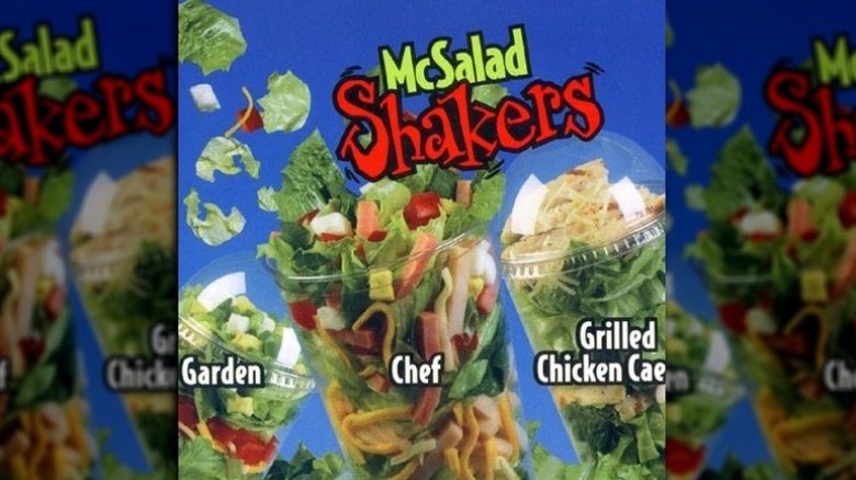 McDonald's bid adieu to all its stateside salad options in 2020, during the COVID-19 pandemic. But it's been over 20 years since any of us have shaken things up with one of the chain's Salad Shakers. That's right. At one time, the burger joint was serving up greens in a cup rather than a bowl for optimal dressing distribution through a couple quick flicks of the wrist — an idea that was admittedly ahead of its time, not to mention, much more suitable for on-the-go eating than the previous McSpaghetti.