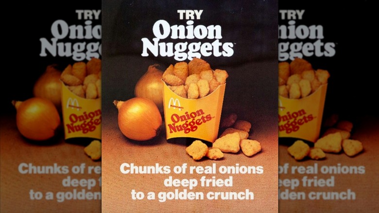 In this format, it can be assumed that the onion-to-breading ratio was wildly skewed. There's a reason fried onions typically come in the shape of rings, strings, and thin petals instead of blocks. Not to mention the name "Onion Nuggets" simply doesn't inspire much confidence or whet your appetite. With these notes in mind, it's not surprising that McDonald's pulled them from the fryer for good in 1979, just four years before the much more enticing McNuggets arrived on the McScene. It could be said that Onion Nuggets paved the way for one of McDonald's most notable food innovations.