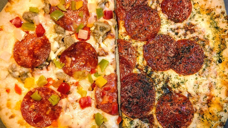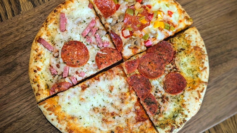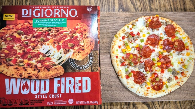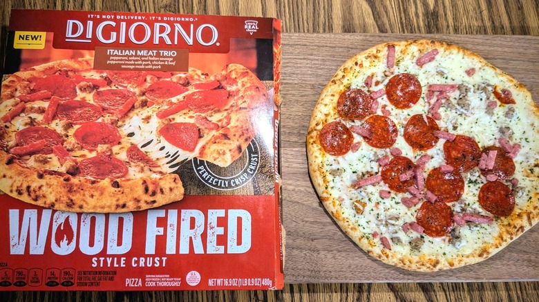 I had the pleasure of trying a new line of DiGiorno pies before they were added to the brand's extensive repertoire of creative recipes — although these new offerings are a little less "out there" than the brand's Hidden Valley Ranch collab and funky Thanksgiving pizza. DiGiorno's new Wood Fired Style Crust line includes four varieties: Italian Meat Trio, Four Cheese, Premium Pepperoni, and Supreme Speciale. So let's dig in and find out if these new frozen pies can really compete with restaurant-quality pizza, or if they're just wood-fired flair without the flame.