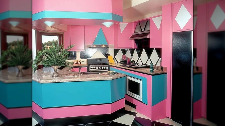 It wasn't only neon that was a major trend in the 1980s. Pastel colors were also thrust into the spotlight as a defining feature in interior design. You'd find soft shades of baby blue, blush pink, mint green, peach, and dusty rose in households across the U.S. In the kitchen, the earthy browns and harvest tones of the 70s were swapped out for pastels, welcoming in a more cheerful and lighter space. With '80s kitchens becoming far more than just a place to cook and eat, these colors were more suited to the socializing and relaxing that the heart of the home became known for at the time.