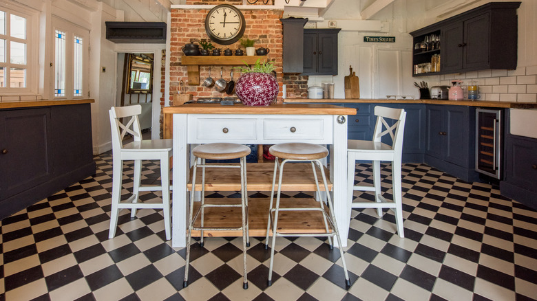 Unlike the shades of earthly brown, the Hollywood Regency design trend was carried over into the '80s from the 70s. It's a style that is considered to be timeless still today, introducing an element of fun into a home. To add this touch of Hollywood into your kitchen, you can fit an oversized chandelier or go a more subtle route by introducing rich colors into the kitchen space. You could also consider adding a statement piece like a patterned dining room table or create some contrast with bold patterns on the wall. Just make sure that the style isn't too far removed from the rest of the home. Another way to achieve the retro kitchen of your dreams is to install black and white checkered flooring.