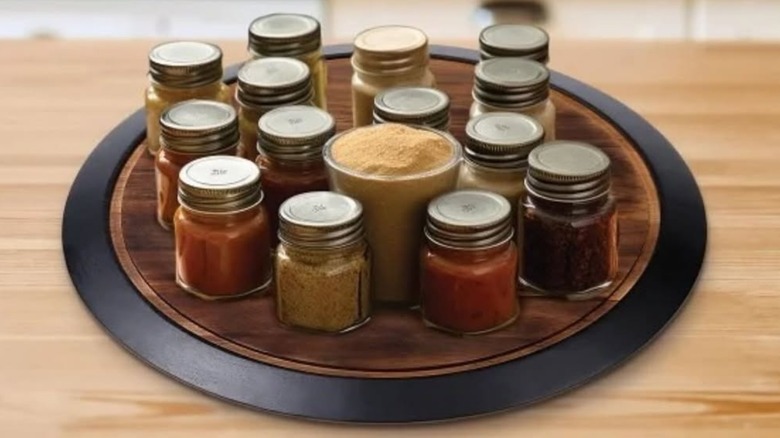 This is the beauty of the Lazy Susan and its rotating super powers — no item will be forgotten in the recesses. Small Tupperware containers with leftover ingredients from meal prep can be stacked on another. If you're a snacky person, use a Lazy Susan for your collection of cheeses, pickles, relishes, and other snacks so they're all together for you to choose from when you're feeling peckish.