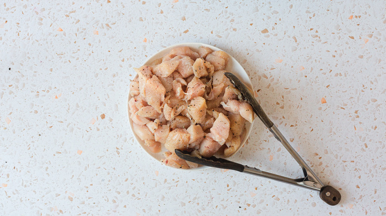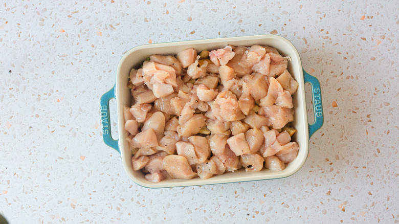 - 2 pounds chicken breasts, cut into ¾-inch cubes