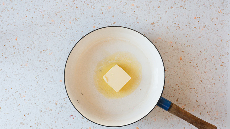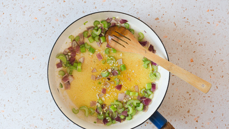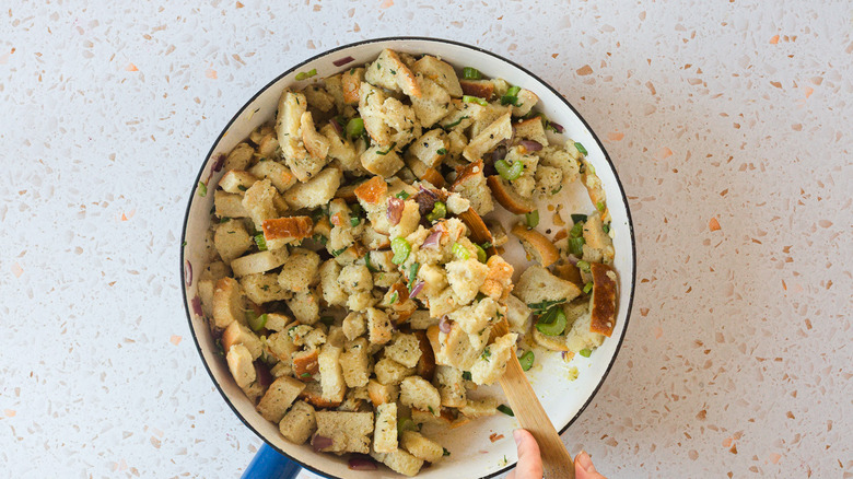 - To make the stuffing, melt the butter in a large skillet over medium heat.