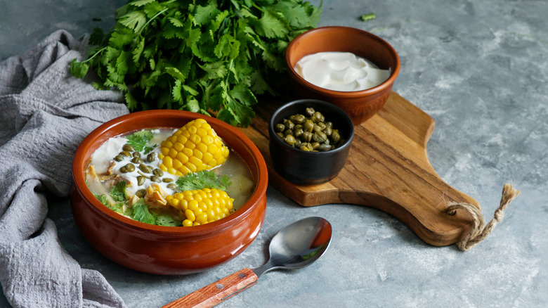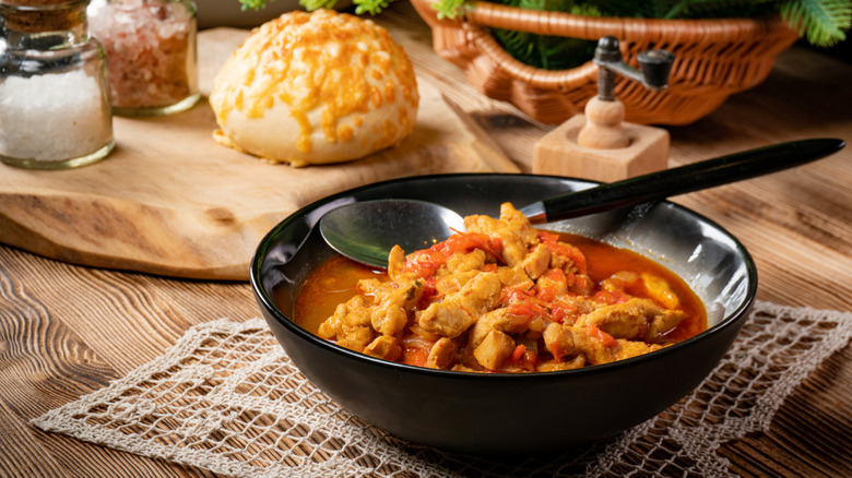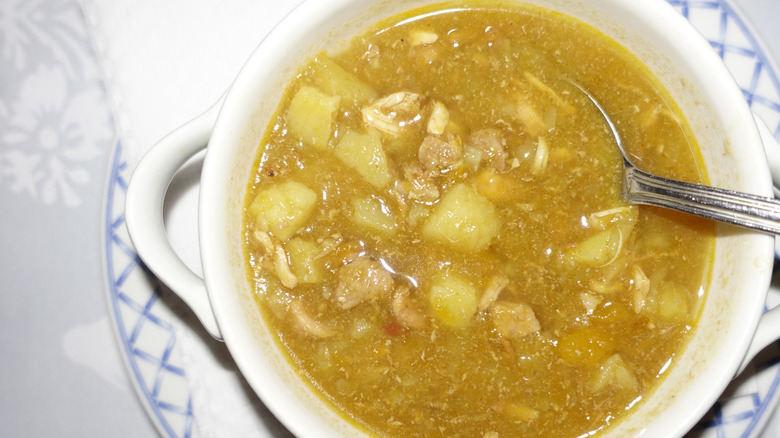 As far as old recipes go, ajiaco dates back to the pre-Columbian period. The dish gets its name from aji, a chili pepper that provides plenty of depth of flavor. The slow-cooked stew has certainly gone through its own evolution of everchanging meats, but root vegetables are a constant in the preparation. It's typically comprised of stewed meats, vegetables, and spices with American, European, and African influences. Think of it as the ultimate one-pot meal — nourishing and packed with flavor.